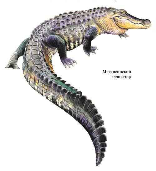 АЛЛИГА?ТОРЫ, семейство крокодилов. Включает 4 рода, один из которых – собственно аллигаторы (2 вида), а 3 объединены под общим названием – кайманы. В отличие от других крокодилов, у аллигаторов длинная широкая морда с характерным строением зубов: нижнечелюстные зубы заходят внутрь верхнечелюстного зубного ряда. Миссисипский аллигатор на передних конечностях имеет плавательные перепонки. Этот обитатель болот и пресных водоёмов юго-востока Северной Америки достигает длины почти 6 м. Он выкапывает и поддерживает в хорошем состоянии пруды, которые становятся постоянным местом жизни для многих видов наземных и пресноводных растений и животных, особенно в период засух. Под корнями деревьев, растущих на берегах, аллигаторы роют норы и тоннели дл. до 6 м, где прячутся во время зимовок и засух, а самки строят у прудов, относящихся к их территории, гнёзда из водорослей и вырванной травы, куда откладывают от 20 до 60 яиц. Так же как и другие крокодилы, оба родителя охраняют кладку. Самка перемешивает прелую траву под яйцами, чтобы тепло от её гниения равномерно их прогревало. Ухаживание за потомством – как и у нильского крокодила, но «ростовые» пруды роют и обустраивают сами родители. В них крокодильчики живут от 1 до 3 лет. В прошлом миссисипский аллигатор был сильно истреблён из-за ценной кожи и преследования фермерами, осушающими болота и оберегающими свой скот. Стал редким видом и был включён в Красную книгу МСОП, но в результате интенсивного разведения на специальных фермах численность этого аллигатора достигла почти миллиона особей, и в 1985 г. он был исключён из Красной книги. Крайне редкий китайский аллигатор, длина которого не превышает 2 м, обитает в нижнем течении р. Янцзы. Исчезает из-за разрушения местообитаний и браконьерской охоты. Осталось немногим более 300 особей. Внесён в Красную книгу МСОП.