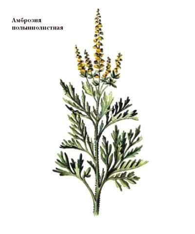 АМБРО?ЗИЯ, род растений сем. сложноцветных. Включает ок. 40 видов одно– и многолетних трав. Родина – Америка. В России (южные и юго-восточные области, Приморье) встречаются 3 вида амброзии: полыннолистная, трёхраздельная и голометельчатая. Все – карантинные сорняки. Амброзия полыннолистная – однолетник выс. 20—200 см со слабо опушёнными перисто-рассечёнными листьями. Образует огромную массу, заглушая культурные растения, истощая и иссушая почву. Размножается семенами, которые сохраняют всхожесть до 5 лет и более. Пыльца вызывает аллергию. Впервые сорняк обнаружен в стране в 1918 г. Амброзия трёхраздельная – однолетник выс. до 150 см. Встречается на Северном Кавказе, в Поволжье, Приморье. Размножается семенами. Впервые обнаружена в стране в 1935 г. Амброзия голометельчатая – многолетний корнеотпрысковый сорняк выс. 60—80 см. Листья с густым щетинистым опушением. Размножается в основном корневой порослью, корневищами и отрезками корней. Встречается на юге и юго-востоке страны.