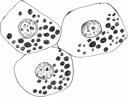 Методы цитохимии подразделяют на две большие категории. К первой категории относятся методы, основанные на использовании специфических красителей, взаимодействующих с конкретными химическими соединениями. Например, при окрашивании Суданом черным в клетках выявляются жиры в виде черных капель, тогда как ядра и структуры цитоплазмы останутся бесцветными (рис. 2.1).