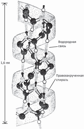 Рис. 3.1. Вторичная структура полипептида – ?-спираль (по Албертс, Брей, Льюис и др., 1994).