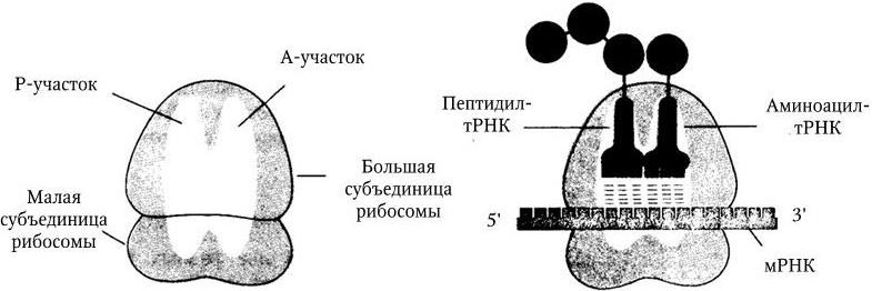 Слева – ненагруженная рибосома; справа – нагруженная (по Б. Альбертсу [и др.])