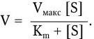 При увеличении концентрации [S], когда [S] > Km, скорость ферментативной реакции (V) будет стремиться к некоторой постоянной величине Vмакс– максимальной скорости реакции: