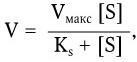 где Vмакс – предел, к которому стремится скорость реакции с повышением концентрации субстрата; Ks – константа, численно равная концентрации субстрата при V=Ммакс/2.