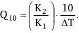Колебание температурного режима оказывает на ферментативные реакции влияние таким же образом, как и на другие химические реакции. Отношение констант реакций при более высокой (Т2) и более низкой (Т1) температурах получило название температурного коэффициента: Q = K2/K1. Значение его обычно дается для интервала в 10 °C (Q10). Величину Q10 легко вычислить для любого температурного интервала ?T по формуле: