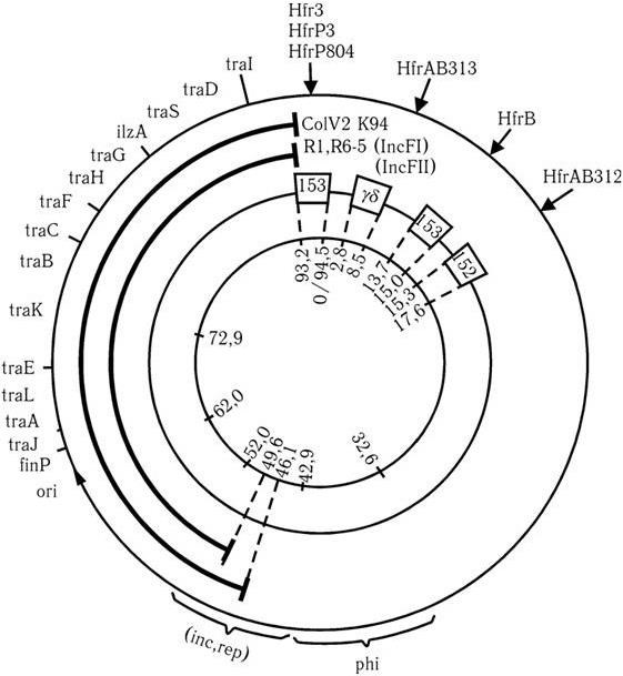 Рис. 51. Генетическая карта F-плазмиды