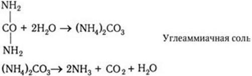 Большое количество связанного азота поступает в почву также в виде мочевины (диамида угольной кислоты) – NH2– CO – NH2. Ежегодно люди и животные выделяют ее около 20 млн тонн. Но мочевина не может быть непосредственно использована в качестве азотного продукта для питания растений. Она подвергается также аммонификации, которую вызывают различные уробактерии. При этом вначале образуется нестойкая углеаммиачная соль, которая далее расщепляется с образованием NH3, CO2 и H2O.