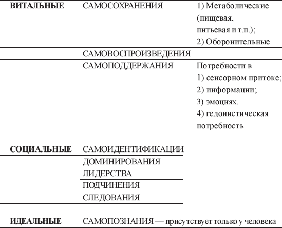Помимо потребностей в самоподдержании организма, к витальным относятся потребности в сенсорных раздражениях, в информации, в эмоциях, в получении приятных ощущений (гедонистическая потребность).