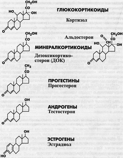 В коре надпочечников синтезируются минералкортикоиды и глюкокортикоиды. Все другие стероиды синтезируются в небольших количествах.