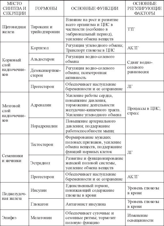 Особенностью регуляции функций эпифиза является прямая связь с гипоталамическими ядрами, непосредственно связанными с сетчаткой. Таким образом, эпифиз получает от глаза сигналы об изменении освещенности. Секреция эпифизарных гормонов усиливается в темноте. Кроме нервных влияний, секреторная функция эпифиза находится под контролем многообразных гуморальных факторов, содержащихся в спинномозговой жидкости. Подробно регуляция секреторной функции эпифиза будет рассмотрена в разделе 9.1.3.