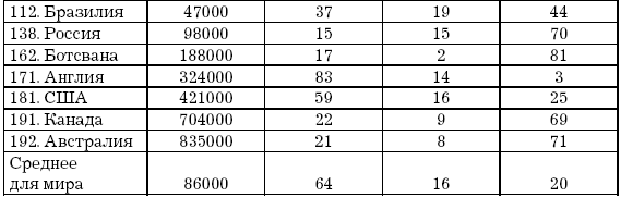 Россия оказалась на скромном месте по всем основным показателям. Относительное богатство России природным капиталом указывает также на весьма низкие показатели по другим видам капитала. Данные, приведенные в табл. 2-Ш, указывают на ошибочность широко распространенного в нашей стране убеждения, что у нас много всего, в особенности природных ресурсов, и указывают на необходимость их более эффективного использования. Они говорят также об очень высокой приоритетности серьезных вложений в человеческий капитал.