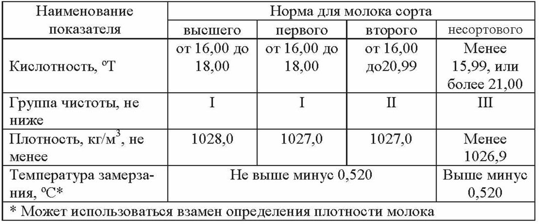 Физико-химические показатели молока по ГОСТ Р 52054-2003 «Молоко натуральное коровье – сырьё»