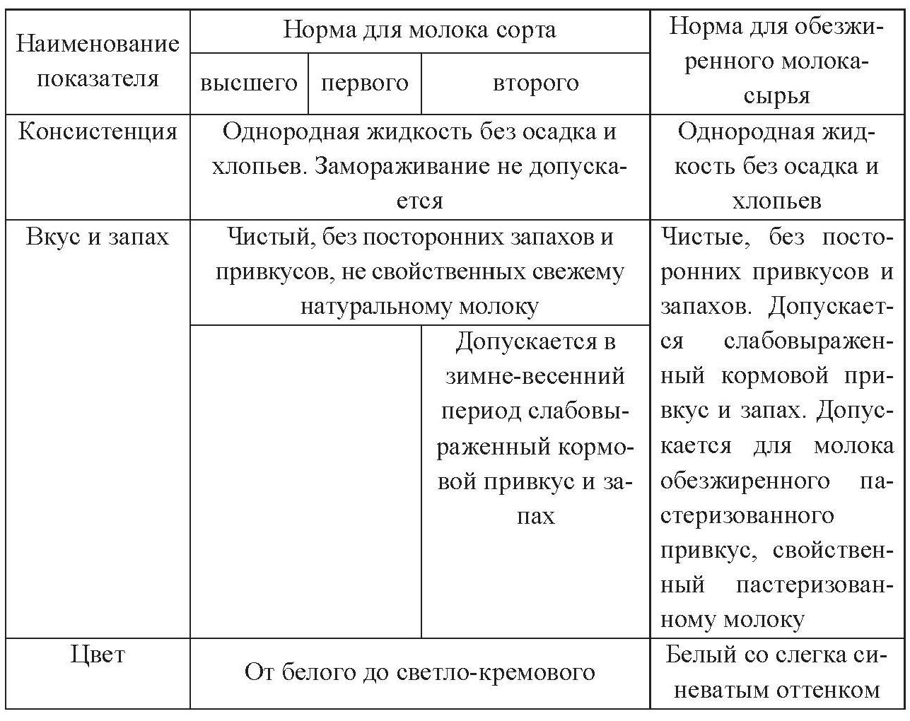 По органолептическим показателям молоко должно соответствовать требованиям, указанным в таблице 1.2.