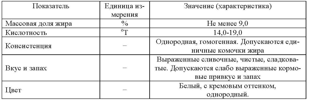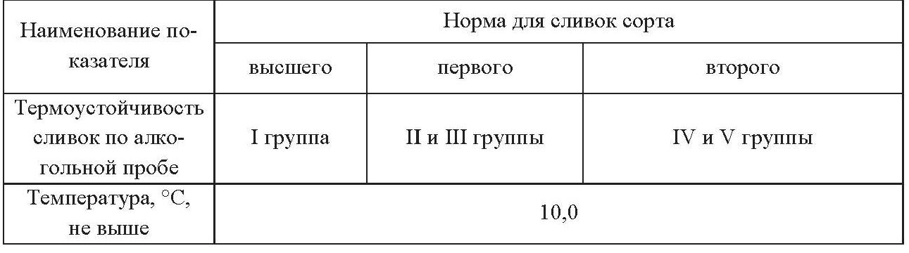 Таблица 2.4 – Требования к сливкам по термоустойчивости и температуре при приемке по ГОСТ Р 53435-2009