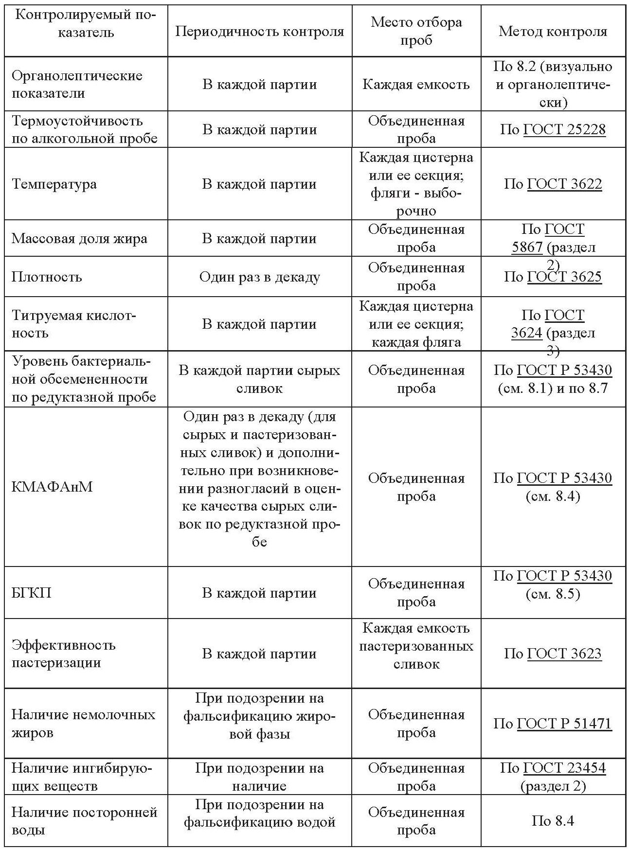 Порядок и периодичность контроля показателей качества и безопасности сливок, установленные ГОСТ Р 53435-2009 изложены в таблице 2.9.