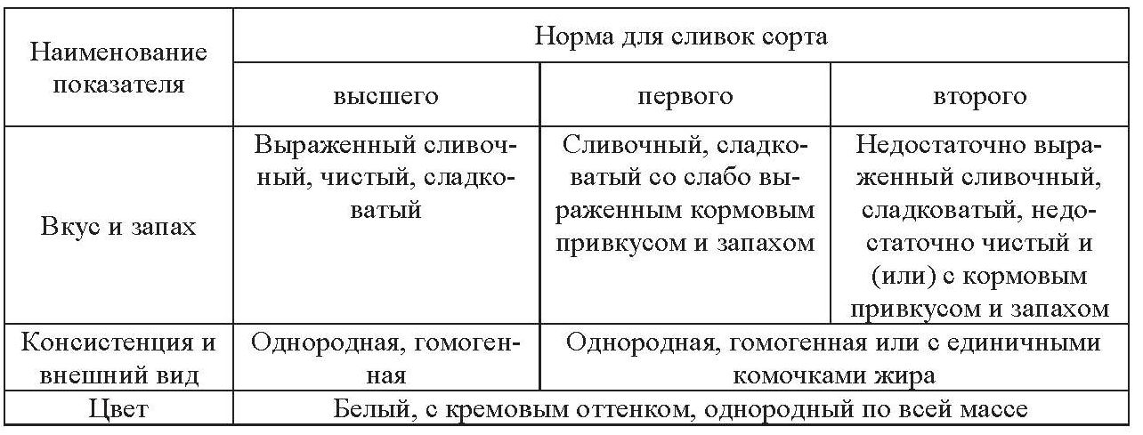 По органолептическим показателям сливки должны соответствовать требованиям, изложенным в таблице 2.3.