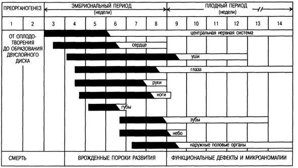 Это периоды наибольшей чувствительности зародыша к различным повреждающим факторам. Указанные факторы называют тератогенными. Действие тератогенных факторов нередко сопровождается возникновением уродств или пороков развития, которые наблюдаются как у животных, так и у человека. Эмбриогенез характеризуется рядом пусковых этапов. Критические периоды как раз и связаны с включением пускового механизма этапа. Если он пройден благополучно, далее следует нормальный рост и дифференцирование. У каждого органа есть свой «пусковой этап» и критический период.