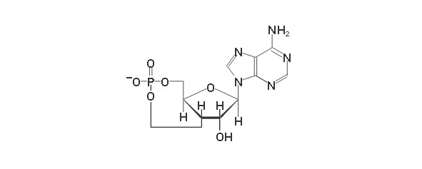 Сигнальная (цГМФ, цАМФ) (Рисунок 35). Циклический AMФ (3?-, 5?-аденозинмонофосфат, цАМФ) – медиатор различных внеклеточных сигналов в клетках животных – образуется из АТФ в результате реакции, катализируемой аденилатциклазой. Активность аденилатциклазы регулируется комплексом взаимодействий, многие из которых инициируются через рецепторы гормонов. Внутриклеточная концентрация цАМФ (около 1 мкмоль/л) на 3 порядка ниже концентрации ATФ. Циклический цГМФ (3?-, 5?-гуанозинмонофосфат, цГМФ) служит внутриклеточным проводником внеклеточных сигналов. В некоторых случаях цГМФ выступает в роли антагониста цАМФ. цГМФ образуется из ГТФ под действием гуанилатциклазы – фермента, имеющего много общего с аденилатциклазой. Гуанилатциклаза, как и аденилатциклаза, регулируется различными эффекторами, в том числе и гормонами. Как и цАМФ, цГМФ гидролизуется фосфодиэстеразой до соответствующего 5?-монофосфата.