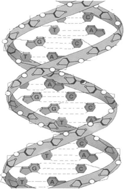 Ген – элементарная единица наследственности. Каждый ген кодирует одну полипептидную цепь белка. В то же время ген представляет собой участок ДНК (дезоксирибонуклеиновой кислоты), двухцепочечная молекула которой (рисунок 3) составляет хромосому. ДНК – биологический полимер, хранитель наследственной информации, которая закодирована в последовательности нуклеотидов – мономеров, составляющих полимер.