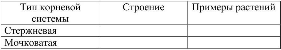Охарактеризуйте особенности стержневой и мочковатой корневых систем, заполнив таблицу 8.