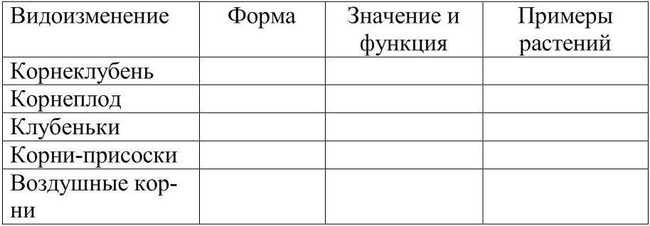 Охарактеризуйте типы видоизменений корней, отметив их функции. Заполните таблицу 9.