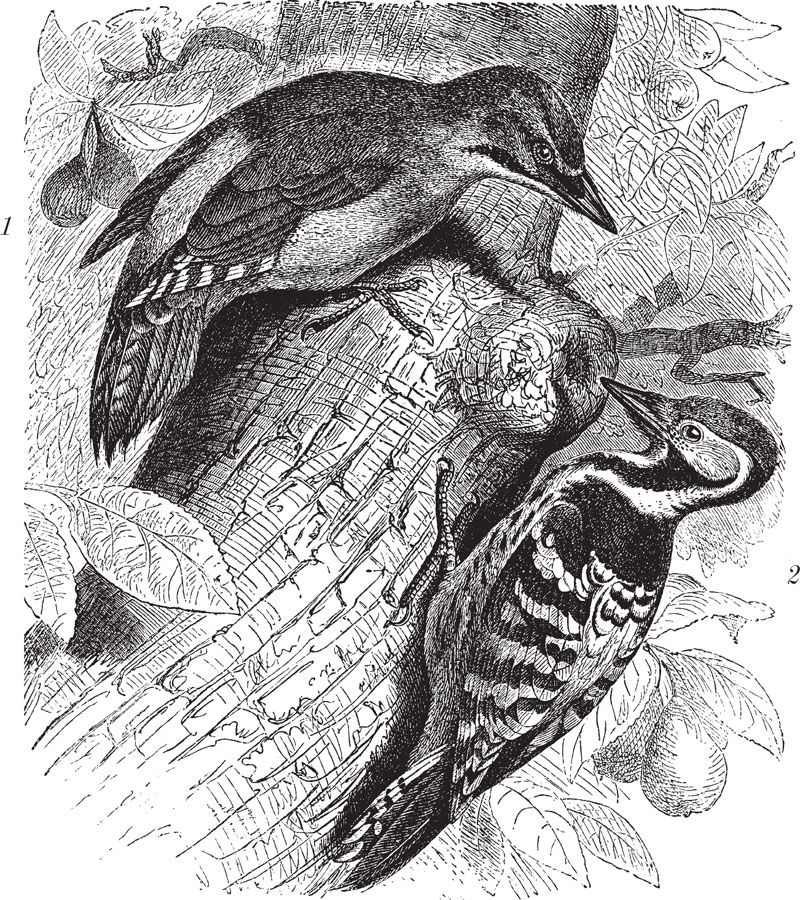 Подобный же случай был в 1877 г. близ Выборга, на даче Ривилин, где появившиеся в ноябре несколько черных дятлов в короткое время жестоко обработали одну дачную постройку. Начали они с оконных рам и резных оконных украшений, затем набросились на крашеную обшивку дома, которая в непродолжительное время почти вся была обращена буквально в щепки. (Я держал в руках эти щепки, на которых ясно можно было видеть следы клюва дятла.) Для предупреждения дальнейшего разрушения дачи пришлось прибегнуть к помощи ружья.