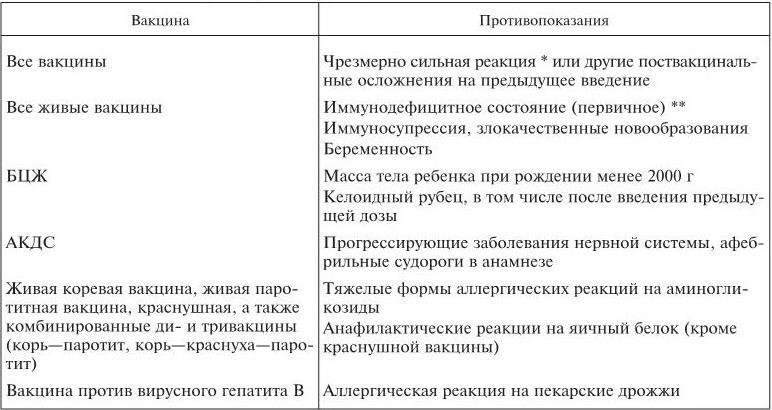 Применяют следующие живые вакцины: БЦЖ, оральную полиомиелитную, коревую, паротитную, краснушную; вакцины против гриппа, чумы, туляремии, бруцеллеза, сибирской язвы, лихорадки Ку, сыпного тифа. Противопоказания к вакцинации живыми вакцинами представлены в табл. 3 (см. с. 50).