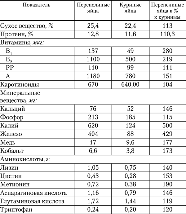 Яйца перепелов по многим питательным веществам превосходят яйца кур (табл. 5).