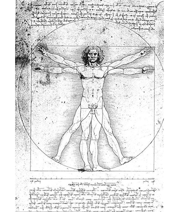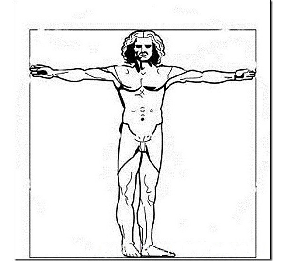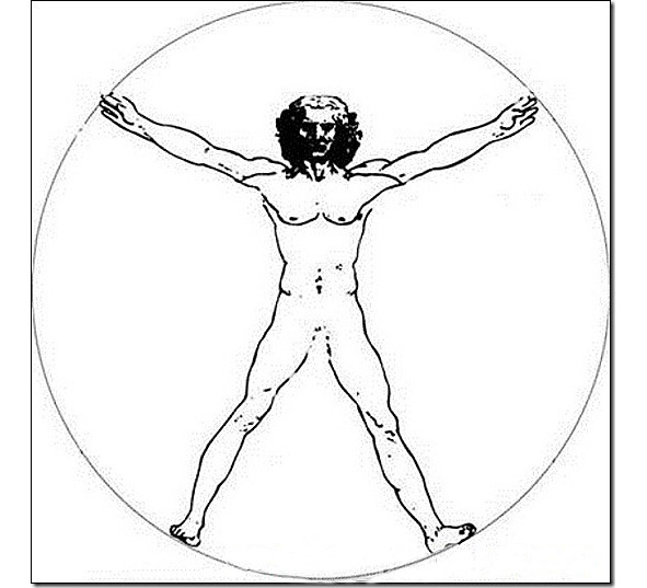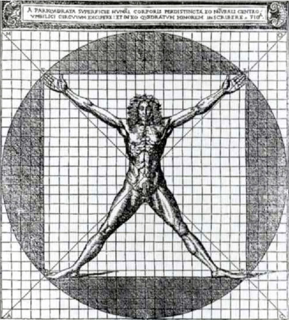 Гениальность Витрувия граничит со злодейством. С одной стороны, к нему следует прислушаться, когда он утверждает, что в основу всего, от архитектуры до Мироустройства (Вселенной) должно находиться строение человека. Человек для Витрувия был идеально пропорционален. Каким бы ростом ты ни обладал, длина твоего тела должна быть равна восьми твоим головам! Начиная с момента, как ты появился на Свет, и, кончая моментом, когда по длине твоего тела тебе строят гроб. Дюрер строго придерживался этого положения. Он был согласен с Марком Витрувий Поллионом – римским архитектором, инженером, теоретиком архитектуры. Витрувий жил и работал во второй половине I века до нашей эры. Точные годы жизни Витрувия неизвестны. При Юлии Цезаре, во время гражданской войны, принимал участие в постройке военных машин. Позднее, будучи военным инженером, самостоятельно занимался разработкой и созданием баллист и других осадных орудий. Древнеримскому архитектору Витрувию принадлежит всемирно известный афоризм: «Архитектура – это порочность, польза и красота». Его трактат «Десять книг по архитектуре» является единственной сохранившейся работой по античной архитектуре…. Несмотря на то, что Витрувий был приближенным римских цезарей, они держали его на почтительном расстоянии от себя. Витрувий был гомосексуалист, Леонардо да Винчи, чьим кумиром он был, нарисовал «рисунок №1» – «Витрувианский человек». Как только не изощрялись в разное время, в том числе и в СССР, в толковании, чтобы завуалировать соитие двух мужчин, второй, активный, с возбужденным членом прячется за первым, чей член как бы отсутствует….У Витрувия не найдешь ни строчки, также, как у Леонардо да Винчи, как же «витрувианские человечки» будут размножаться? Витрувий женщинами не интересовался, и поэтому даже Дюрер, который резко отошел от «канонов» Витрувия, ни словом не обмолвился о «витрувианской даме»! Он стал искать Свою «вторую половинку», подробно о которой можно прочитать у Платона. На земле, судя по археологическим раскопкам древнейшей цивилизации, никаких следов существования «серафимов» (Бальзак, разделяющий взгляды Платона и Дюрера) найдено не было….