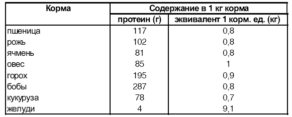 К концентрированным относят зерновые злаковые и бобовые, жмыхи, отруби (табл. 2). В качестве кормов для свиней чаще используют ячмень, кукурузу, овес, которые содержат 40–70 % крахмала и 10–12 % протеина, но бедны минеральными веществами.