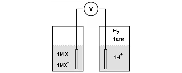 Таким образом, электроны движутся от опытной полукамеры к контрольной и, следовательно, электрод в опытной полукамере заряжен отрицательно по отношению к электроду стандартной полукамеры. Окислительно-восстановительный потенциал пары X+:X соответствует напряжению в начале эксперимента (когда концентрации X+, X и Н+ равны 1 М). Окислительно-восстановительный потенциал пары Н+:Н2 определен равным 0 В (вольт).