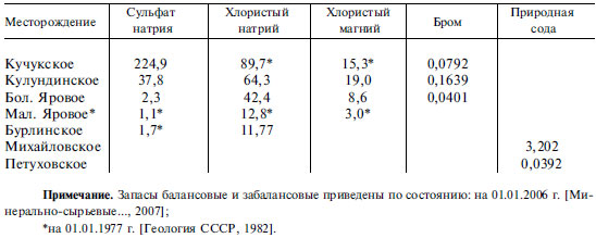 Таблица 5.3 Запасы солей по крупнейшим месторождениям Алтайского края, млн т