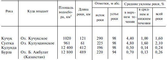 Таблица 5.5 Характеристика основных рек и их водосборов [Кулундинская…, 1972, Ресурсы…, 1969]