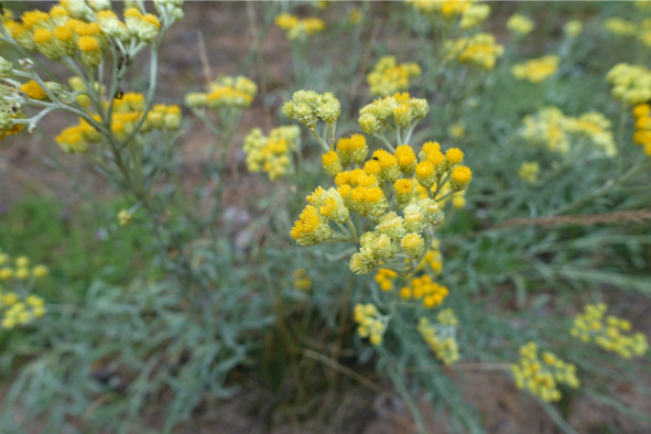 Рис. 6. Бессме?ртник песча?ный (цмин песчаный, или соло?менный цвет, или сухоцве?т, или златоцве?т песчаный), лат. Helichr?sum aren?rium