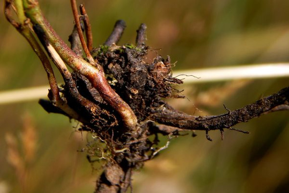 Корневая система у травы мощная, стержневая, хорошо разветвленная. Стержень может проникать в грунт на глубину до 1,5 метра, что помогает культуре выжить даже в самые засушливые годы. У старых особей толщина основного стержня может увеличиться до 2 см.