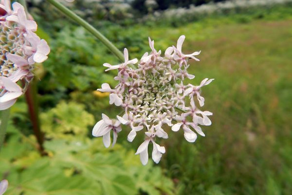 Соцветие борщевика Сосновского – многолучевой зонтик, достигающий до 30 см в радиусе. Его мелкие невзрачные цветки могут быть чисто-белого, розоватого или бело-зеленого оттенка. Время цветения борщевика – все лето, а при благоприятных климатических условиях, даже сентябрь.
