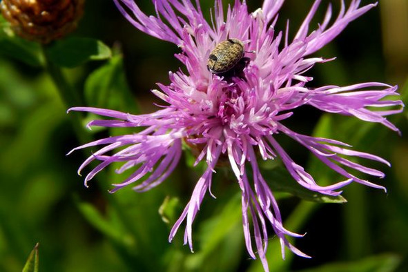 Василек луговой никогда не спутаешь с полевым. На вид он более груб, да и само соцветие не такое – это корзинка с двумя видами цветов. Цветки, расположенные по краям цветочной корзинки, имеют крупную воронковидную форму.