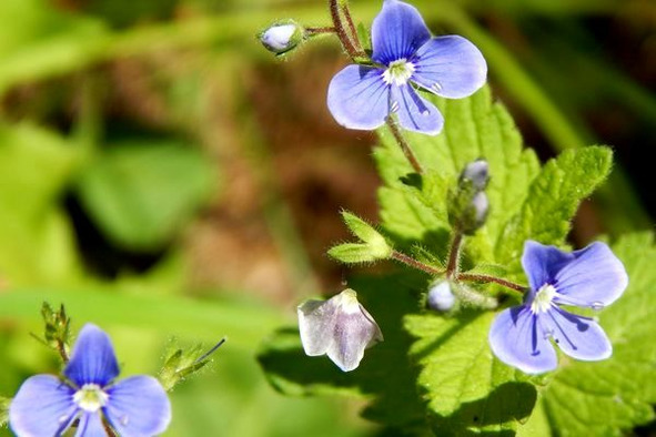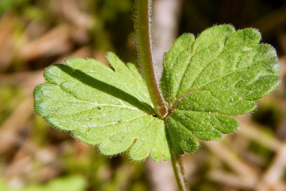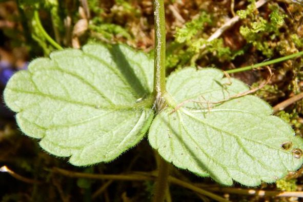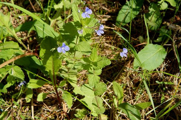 У вероники дубравной они имеют яйцевидную форму, короткие черешки, легкое опушение и городчатые края.