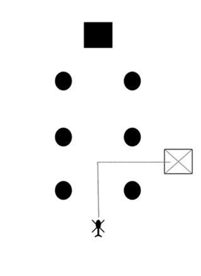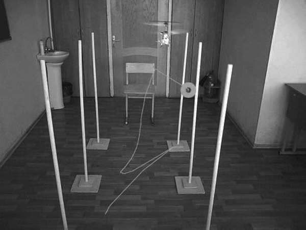 Исследование состояло из двух экспериментальных этапов. На первом этапе происходила запись самостоятельного обучения одним испытуемым пилотированию радиоуправляемым вертолетом. Перед испытуемым стояло задание пролететь полосу препятствий (рисунок 1). Задание для испытуемого включало полет по определенному маршруту состоящему из двух частей, туда и обратно (рисунки 2,3) и 2 посадок на стул и обратно на место взлета. При этом испытуемому необходимо было соблюдать ряд правил: не взлетать выше препятствий и не касаться пола.