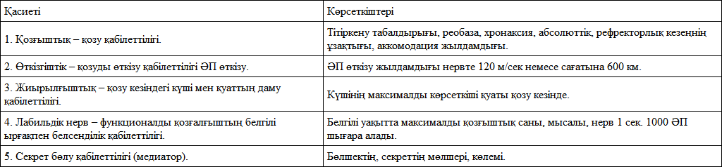 ?озу – ?рекет потенциалыны? пайда болып, тканьдерді? ?зіне т?н жауап ?айтаруы, мысалы жиырылып, секрет б?лу ар?ылы, медиаторлар шы?ару ар?ылы.