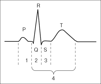 Рис. 19. Схема электрокардиограммы здорового человека 1 – интервал PQ; 2 – интервал QRS; 3 – интервал ST; 4 – интервал QT (электрическая систола сердца)