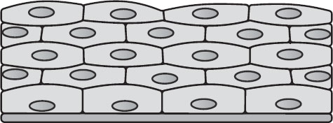 1. Эпителиальная или покровная ткань (эпителий), которая покрывает организм снаружи (верхний слой кожи), выстилает поверхность внутренних органов и полости организма, а также входит в состав желез внутренней и внешней секреции. Соответственно, эпителий подразделяется на два вида – покровный и железистый. Покровный эпителий отделяет организм от внешней среды и органы друг от друга (барьерная функция), а также способствует обмену веществ между организмом и внешней средой (обменная функция). Клетки покровной эпителиальной ткани плотно соединены друг с другом, межклеточного вещества между ними практически нет. Они могут лежать в один или в несколько слоев.