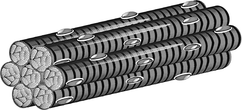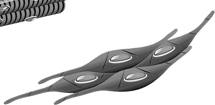 Клетки поперечно-полосатой скелетной мышечной ткани имеют большую длину, которая выражается в сантиметрах. Эти клетки многоядерные (число ядер может быть более 100), в световом микроскопе их цитоплазма выглядит как череда темных и светлых полосок, что обусловлено чередованием участков с различными оптическими свойствами. Поперечно-полосатые мышечные клетки имеют высокую скорость сокращения и расслабления, а также обладают произвольностью – их деятельность управляется по нашей воле.