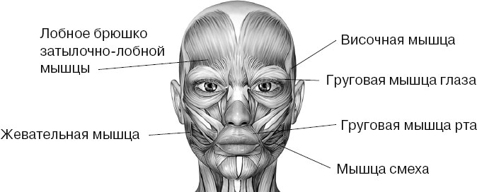 Мышцы головы делятся на жевательные и мимические. Жевательные мышцы совершают жевательные движения и участвуют в произнесении звуков. Мимические управляют мимикой и участвуют в произнесении звуков, а также в акте жевания. Характерной особенностью жевательных мышц является то, что они одним концом крепятся к коже, а не к другой кости.