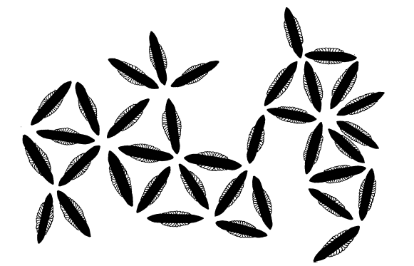Рис. 3. Яйца комаров Anopheles, образующие на поверхности воды характерный рисунок (по Gillett, 1971).