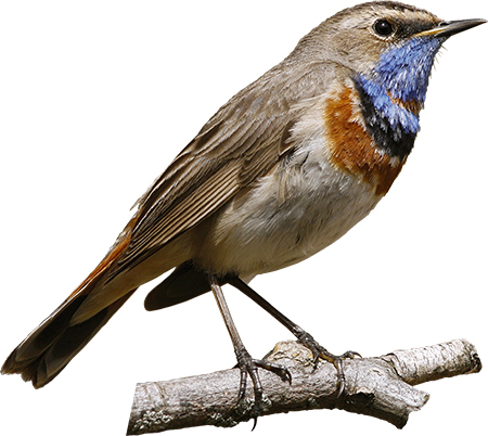 Горло и грудь этой маленькой сероватой птички украшены ярким синим пятном с рыжим или белым пятнышком в центре. Пятно окантовано черной полосой. У самки пятно белое с черными пестринами. Посадка прямая, хвост чуть задран вверх, глаза темные, большие, выразительные.