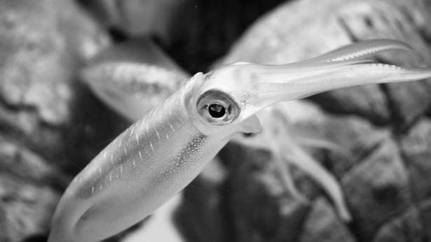 Глаза головоногих, лежащие в углублениях хрящевой капсулы, имеют роговицу, радужную оболочку и зрачок, который может расширяться и сужаться, а также хрусталик и сетчатку. Вот только процесс аккомодации (установка глаза на ближнюю и дальнюю точку видения) осуществляется по-разному: у человека – за счет изменения кривизны хрусталика, а у кальмаров – путем удаления и приближения его к сетчатке, наподобие скользящего объектива в фотоаппарате.
