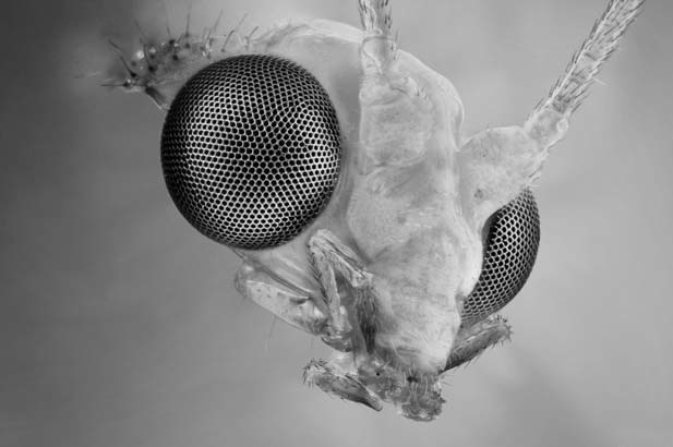 Если камерный глаз имеет вогнутую сетчатку, на которую проецируется изображение, то фасеточный представляет собой неподвижную мозаичную полусферу, собранную из огромного числа фоточувствительных трубочек. За фасеточным глазом никакого изображения не возникает, однако стрекоза видит, и видит весьма неплохо. И хотя она не может похвастаться остротой зрения и довольно близорука, зато прекрасно улавливает движение потенциальной жертвы и способна видеть в диапазоне частот, совершенно недоступных нашему глазу. Разглядеть муху или комара на расстоянии до десяти метров для нее не составляет большого труда. Разумеется, стрекоза видит окружающий мир совсем не так, как мы с вами, но это не мешает ей замечательно ориентироваться в пространстве.