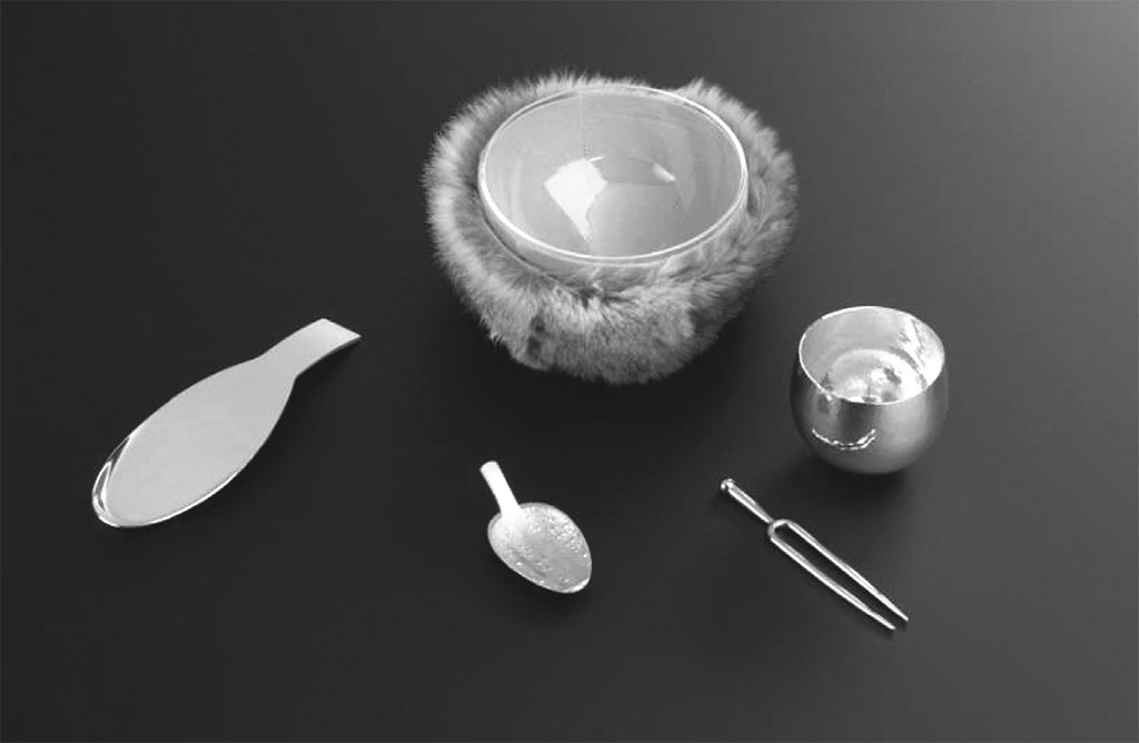 Почему не обернуть ручки столовых приборов мехом, как это делали итальянские футуристы во время тактильных обедов[26] в 1930-х годах? Мы тут, в Оксфорде, попробовали кое-что сделать (фото 0.3). Конечно, существует инерция, люди не очень любят что-то менять.[27] Но если мы в последние годы приняли такие радикальные новшества в столовой посуде, почему не проделать то же самое со столовыми приборами?