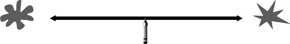 Рис. 3.1. Обладают ли вкусы, ароматы и запахи формой? Здесь представлена символическая шкала простых форм, которую мы часто используем в своих исследованиях. Карандаш отмечает середину шкалы.