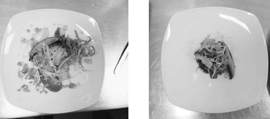 Есть и хорошие новости. Лаборатории вроде моей занимаются исследованием того, как использовать визуальную привлекательность еды в позитивных целях, например, чтобы мы учились готовить полезную еду дома. Любой из нас может сделать еду, приготовленную дома, более привлекательной, красиво разложив ее на тарелке. Например, во время одного исследования, проведенного в Оксфорде, мы приготовили 160 порций салата в столовой колледжа: часть из них представляла собой обычный смешанный салат, а остальные напоминали по виду картину Кандинского. Результат показал, что студенты охотно платили вдвое больше за ту же самую еду, когда визуально она выглядела более привлекательной (фото 3.8). Салат Кандинского дома приготовить страшно (учитывая, что в него входит более тридцати элементов). Но даже типичную английскую домашнюю трапезу, состоящую из стейка, картофеля фри и зеленого салата (всего лишь из трех ингредиентов), можно сделать значительно более аппетитной, уделив чуть больше внимания ее презентации.[224]